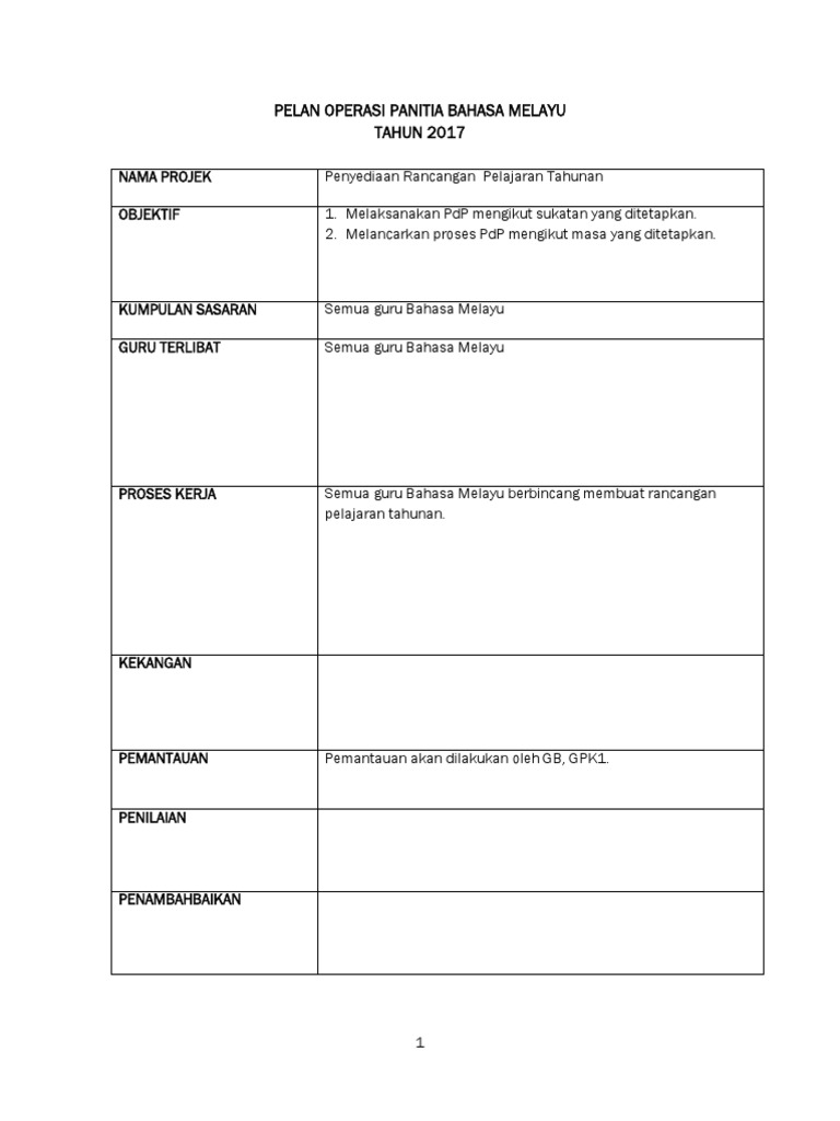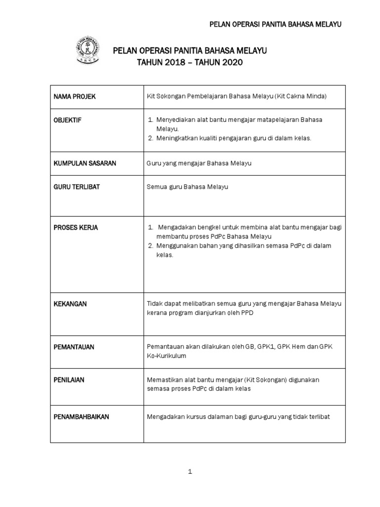 Sk Pelan Taktikal Operasi Panitia Bahasa Melayu Pdf