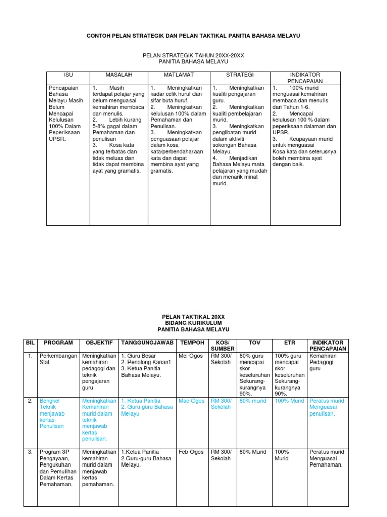 Contoh Pelan Strategik Dan Pelan Taktikal Panitia Bahasa Melayu Pdf